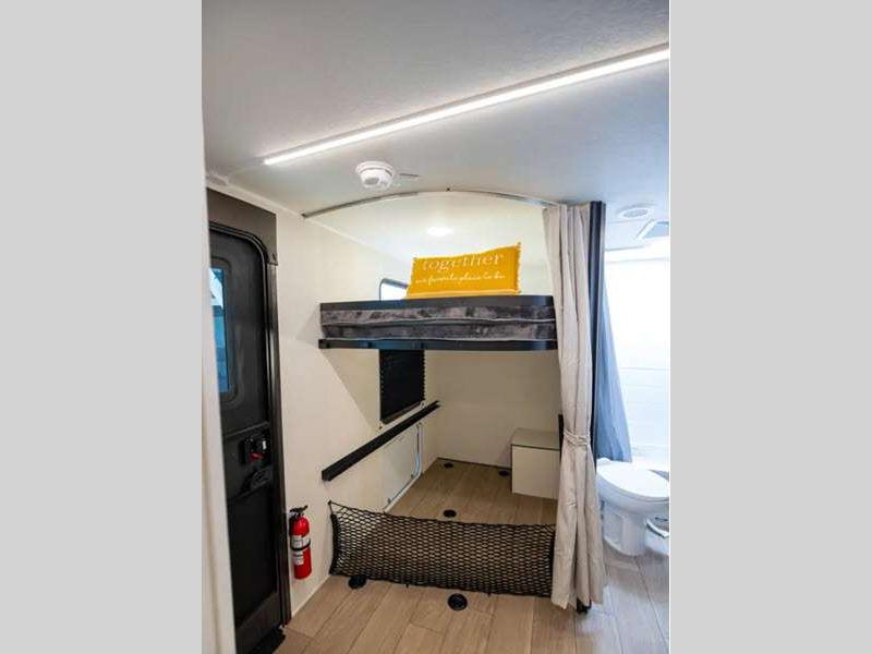 Sleeps 9 Slides 1 Length 34 ft Ext Width 8 ft Ext Height 11 ft Hitch Weight 880 lbs GVWR 8695 lbs Dry Weight 6668 lbs Cargo Capacity 2027 lbs Fresh Water Capacity 81 gals Grey Water Capacity 35 gals Black Water Capacity 35 gals Number Of Bunks 3 Available Beds Queen Refrigerator Type 12V Residential Style Refrigerator Size 10 cu ft Cooktop Burners 3 Number of Awnings 1 Water Heater Type On Demand Tankless AC BTU 15000 btu TV Info LED TV Awning Info 18' Axle Count 2 Shower Type Standard Electrical Service 50 amp Solar Wattage 100 watts Similar Floorplans