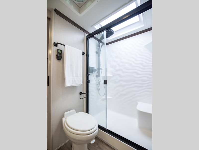 You will truly appreciate the stackable washer/dryer because it will allow you to travel without restraint, and the Truma Aqua Go Comfort on-demand hot water heater will give you hot water whenever you need it. You'll stay entertained with a Samsung LED Smart TV in the living room and a 40" LED TV in the bedroom, and the 200W solar panel will provide some off-grid capabilities.