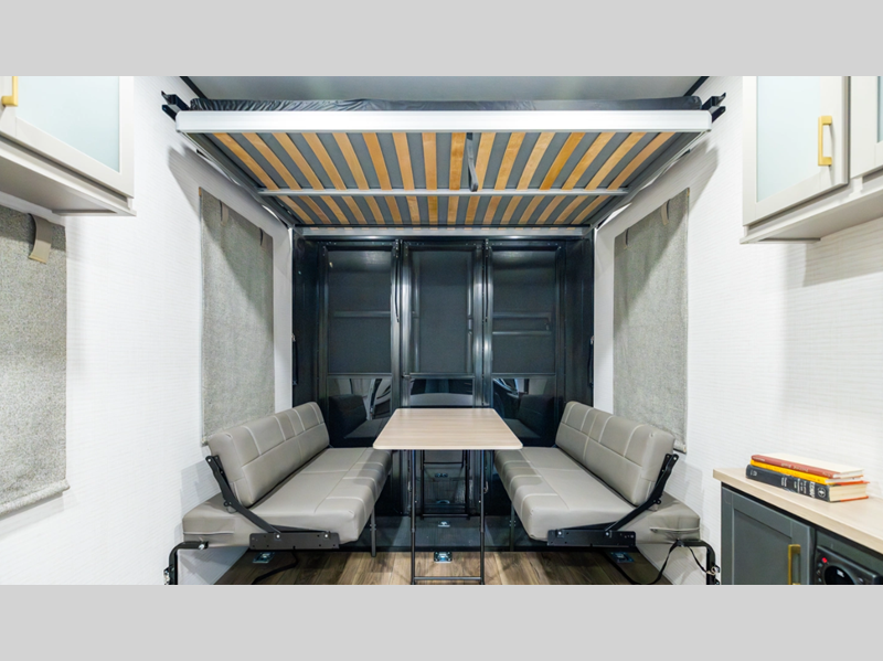 There is a rear beaver tail frame, a docking station, and a magnetic screen wall so you can let the fresh air in without letting the bugs in. You will be delighted with the fiberglass floor insulation and LED lights, and there is a tankless water heater to provide endless hot showers after trail riding. The Alumifoil insulated enclosed underbelly will help extend your camping season, and the patio railing kit will let you enjoy more time outdoors once the toys are unloaded.