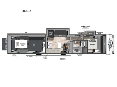 There is fiberglass flooring insulation that will withstand your many adventures plus a rear beaver tail frame for easy unloading and an external fuel cell with a pump. You will feel right at home with decorative glass cabinet doors and LED lights, and there is a tankless water heater to provide endless hot showers after trail riding. The Alumifoil insulated enclosed underbelly will help extend your camping season, and each model is back up camera ready if you want to make parking easier than ever.